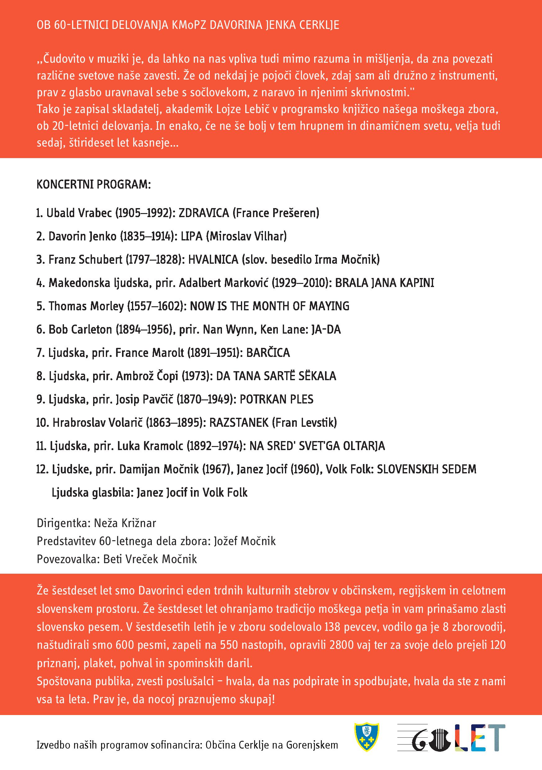 Koncertni list_SLAVNOSTNI KONCERT OB 60 – letnici delovanja_30.11.2019