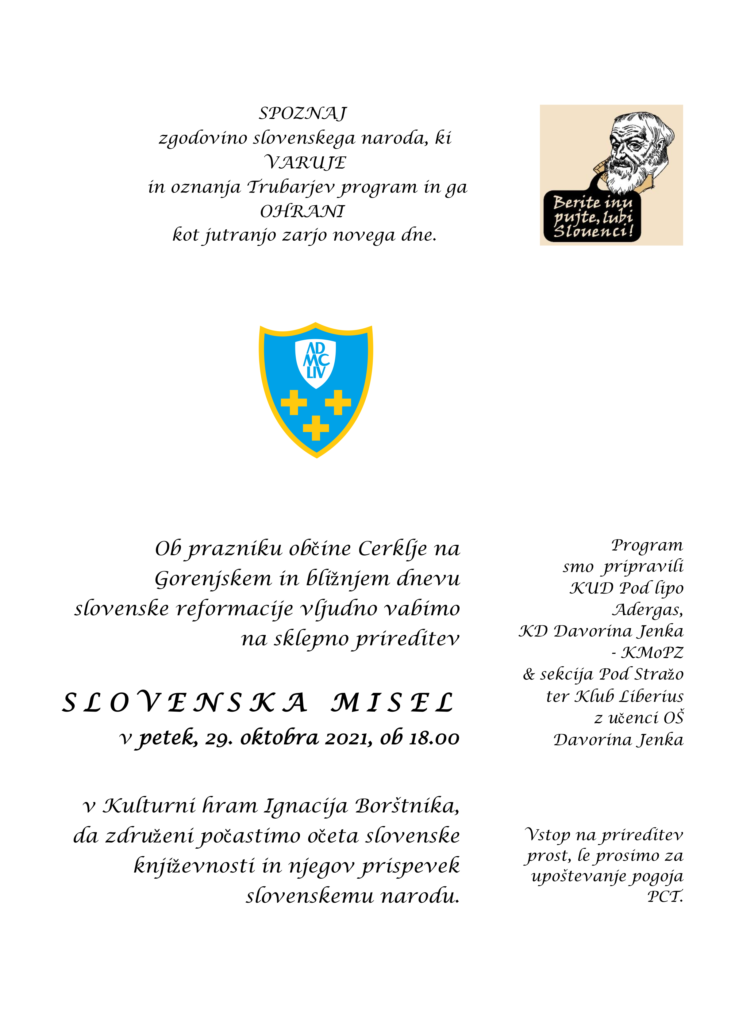 Slovenska misel – Berite inu pujte, lubi Slouenci! Slovenska misel – Berite inu pujte, lubi Slouenci! (Oblikovanje: Blaž Močnik)