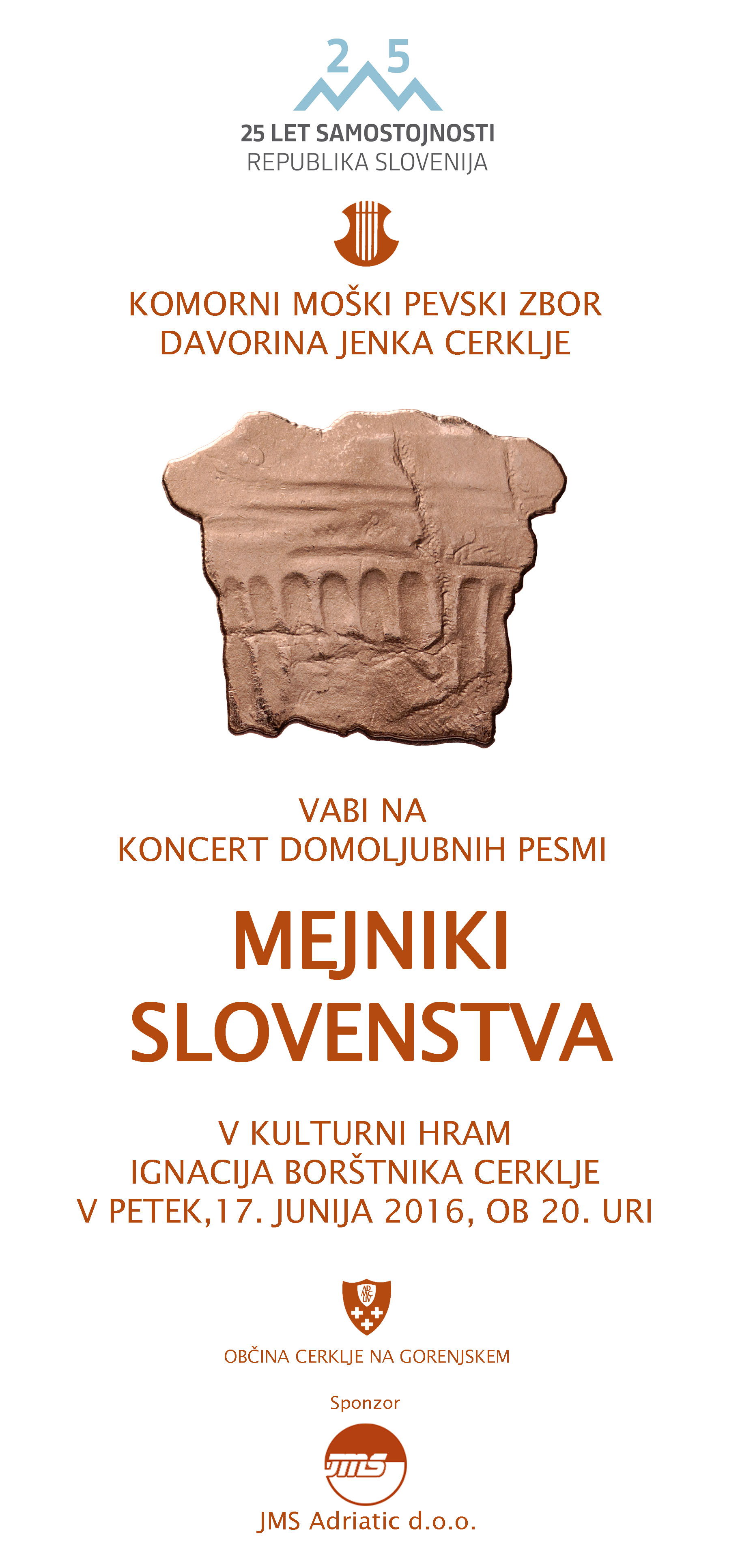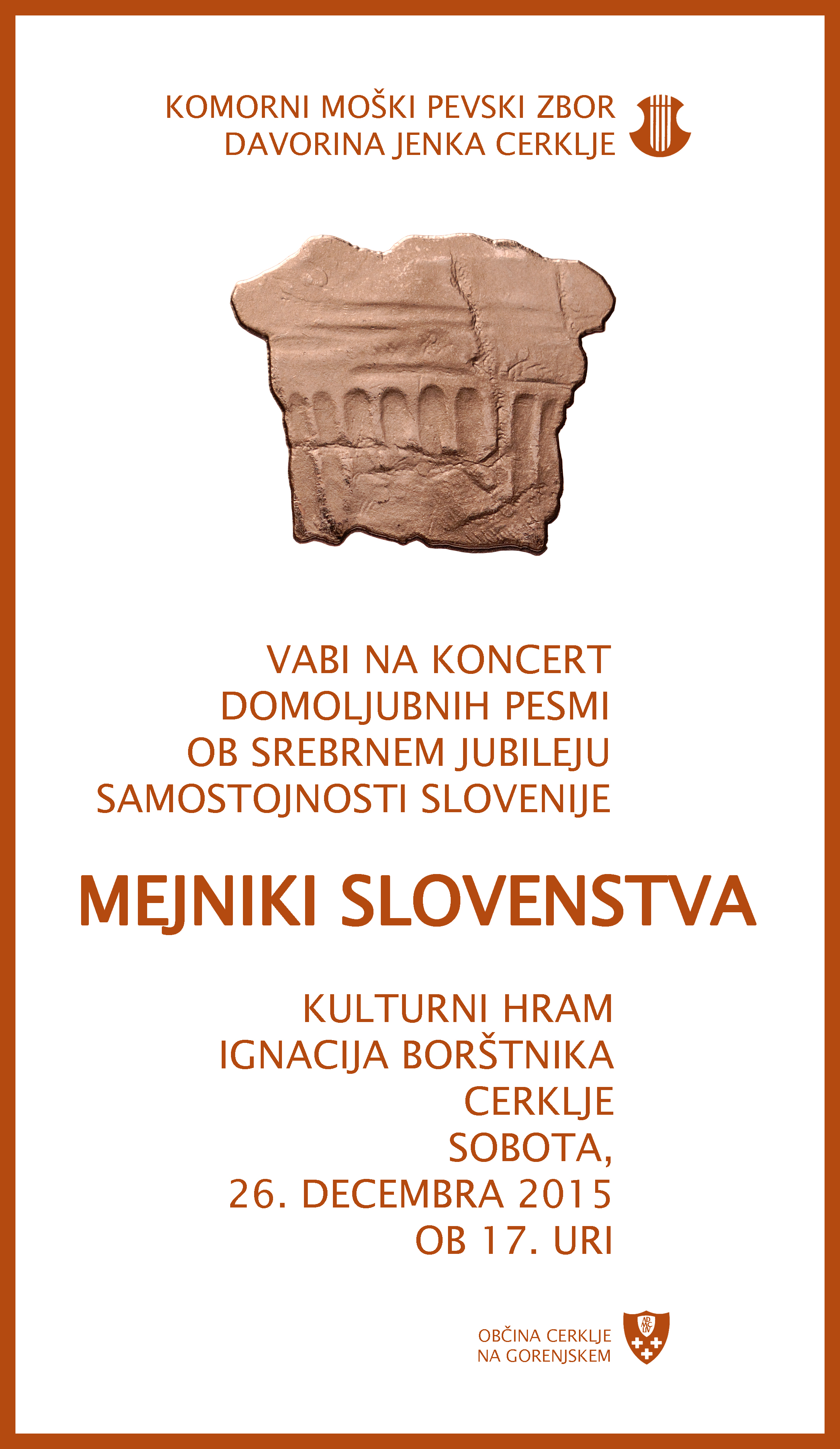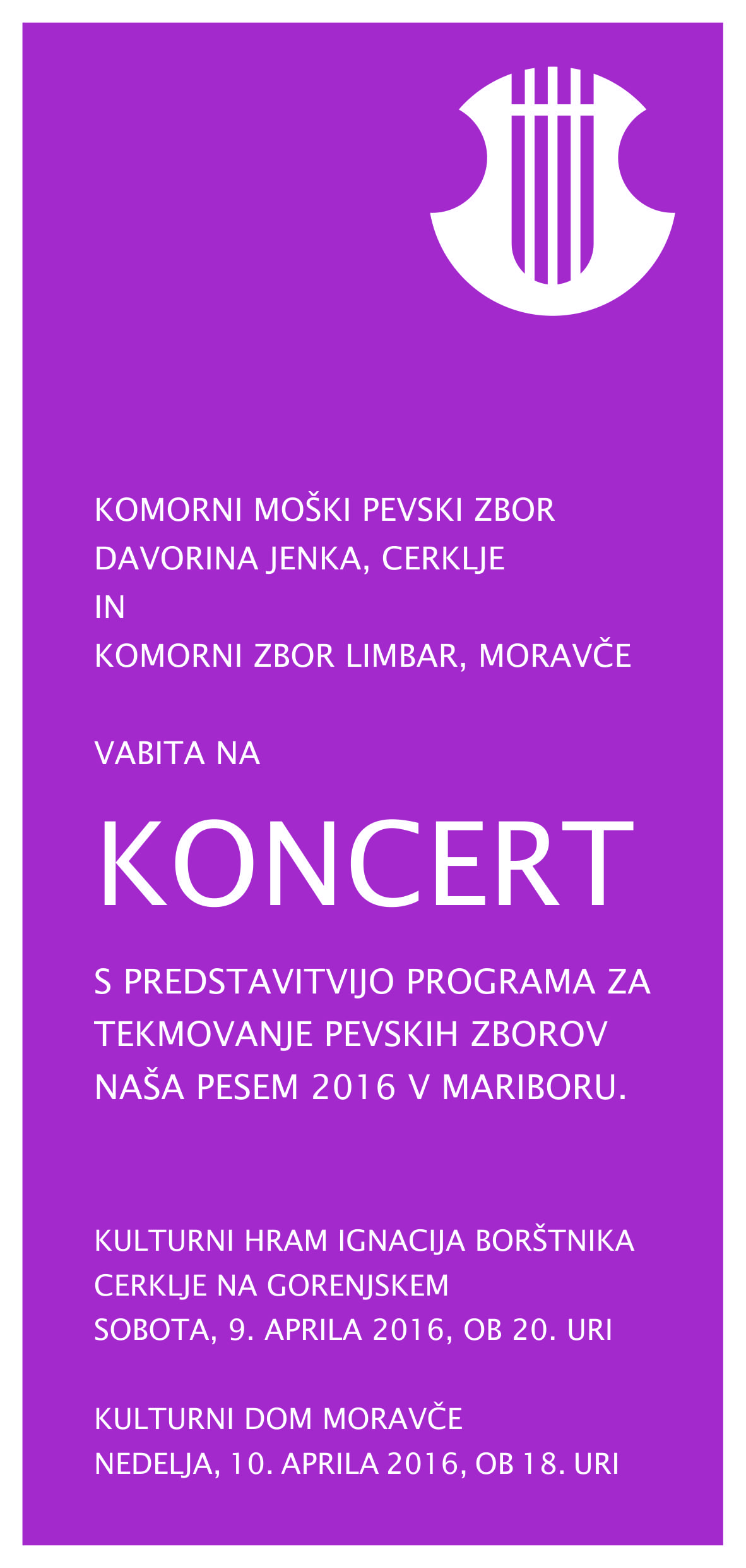 Prvič pa nam boste lahko prisluhnili na osrednji slovesnosti ob občinskem prazniku, v petek, 23. septembra, ob 19. uri, v Kulturnem hramu Ignacija Borštnika v Cerkljah. Prireditev bo za naš zbor še posebej praznična, saj bo na njej za častnega občana Občine Cerklje na Gorenjskem razglašen naš dolgoletni in zaslužni dirigent Jožef Močnik. Veseli in ponosni smo skupaj z njim! Vabimo vas, da se nam pridružite v čim večjem številu.